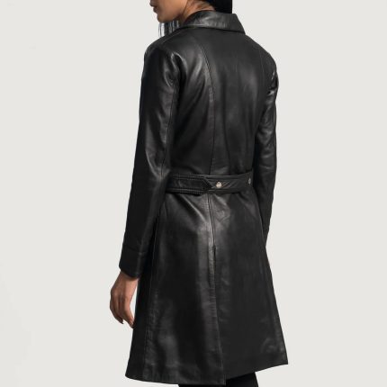 • Women Black Leather Trench Coat Women Black Leather Trench Coat