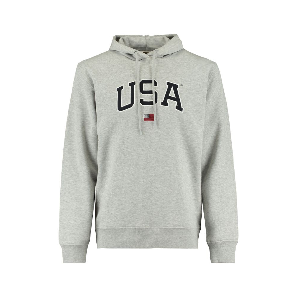 America Today men’s hoodie. The hoodie features a hood with cord, a print on the front and a cuffed hemline and sleeves.